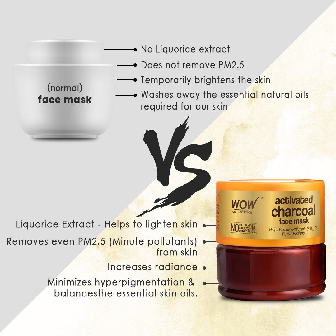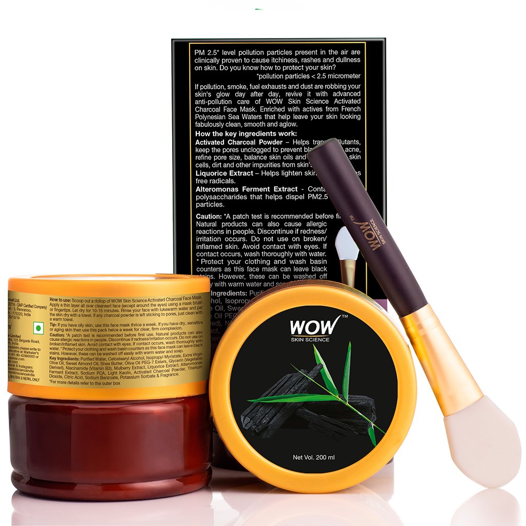 WOW Skin Science Activated Charcoal Face Mask is an advanced and premium antipollution facemask enriched with Activated Charcoal Powder, Liquorice Extract & Alteromonas Ferment Extract from French Polynesian Sea Waters. It helps gently and efficiently remove pollution particles, impurities, dust and dead cells from the skin.
