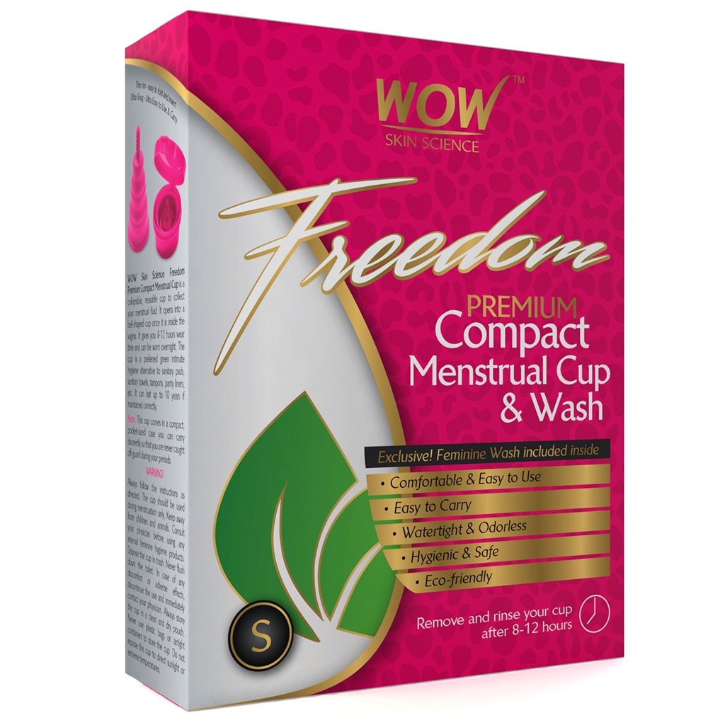WOW Skin Science Freedom Premium Menstrual Cup & Wash have been created to meet your period needs with hygiene, comfort and sustainability. WOW Skin Science Freedom Premium Menstrual Cup is a soft, flexible and bell-shaped cup made of 100% medical grade, hypoallergenic silicone. Insertable like a tampon, it collects (doesn't abosrb) blood that can be emptied after every few hours and re-inserted for further use, or washed and stored till needed again. WOW Skin Science Cleansing Foaming Freedom Wash is formulated with lactic acid to help keep the vaginal pH at a healthy 3.5, and tea tree essential oil for keeping away odour causing bacteria.
