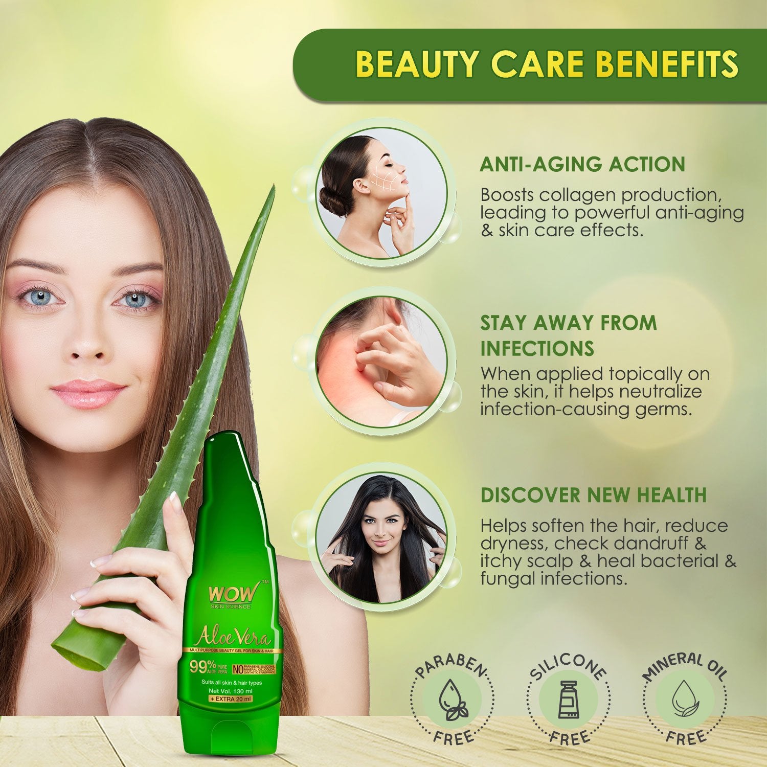 WOW Skin Science Aloe Vera Multipurpose Beauty Gel for Skin and Hair - 130 ml + 20 ml