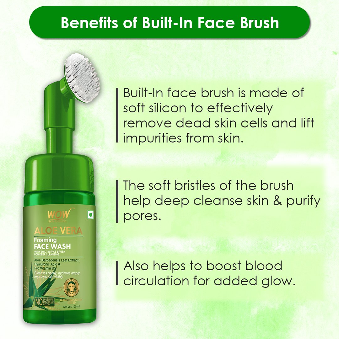 Give your skin the gift of gentle and wholesome cleansing with WOW Skin Science Aloe Vera Foaming Face Wash with Built-In Face Brush. It is a skin-reviving face wash that helps to refresh dull skin by gently removing the layer of dead skin, and keeping excess sebum in check. The face wash comes with a built-in face brush with gentle silicone bristles to help give your face deep cleansing on surface and clears out the pores.