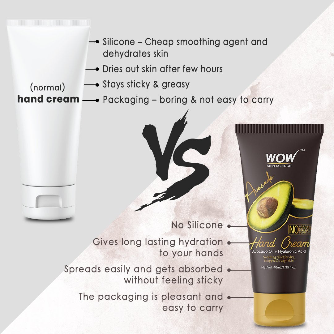 WOW Skin Science Avocado Gentle Hand Cream With Avocado Oil + Hyaluronic Acid - No Parabens, Silicones, Mineral Oil, Color & Pg - 40 ml