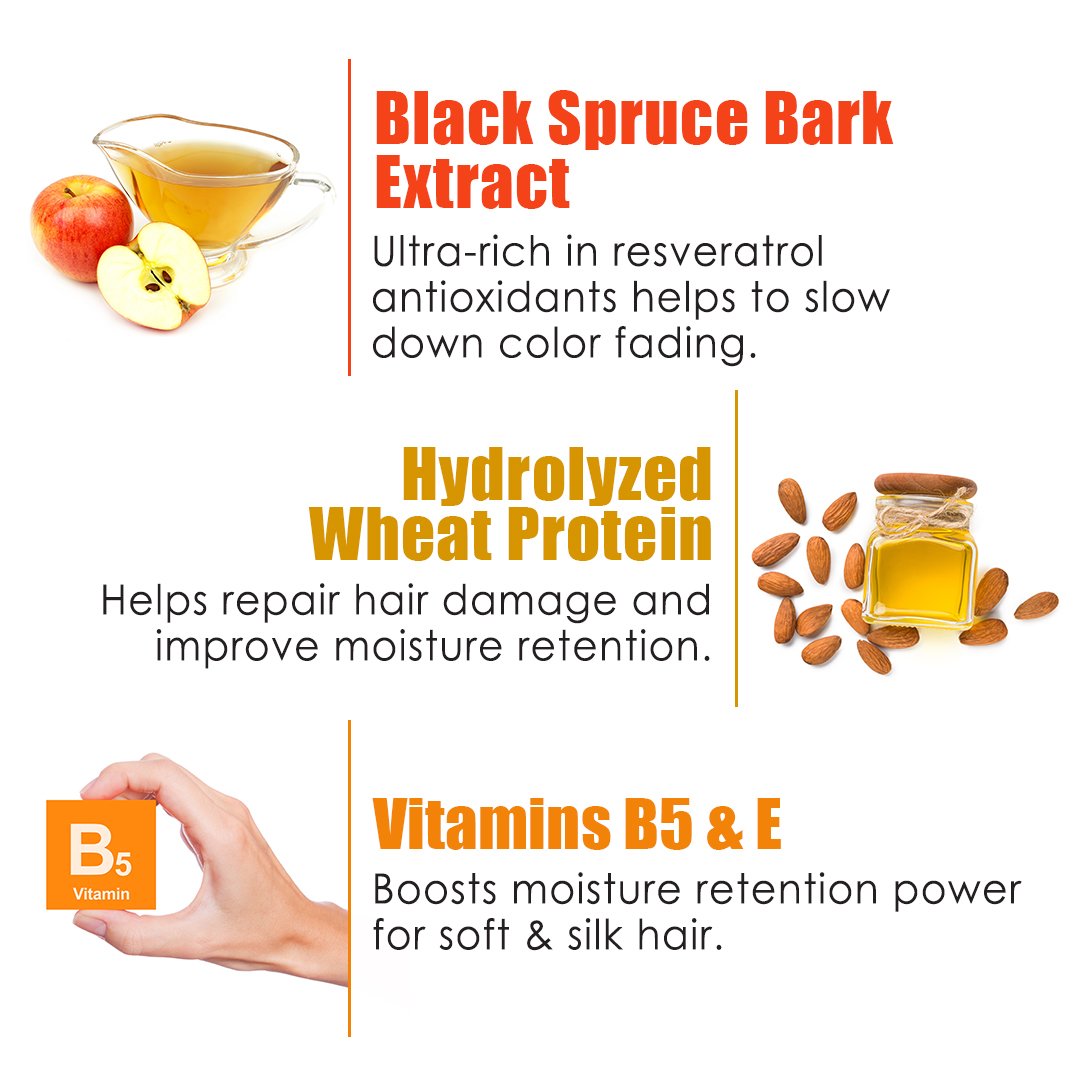 Black Spruce Bark Extract - Extracted from bark of black spruce trees naturally growing in intensely cold Boreal Forests. Ultra-rich in resveratrol antioxidants clinically proven to absorb sun's UV rays that otherwise harm hair and fade color.