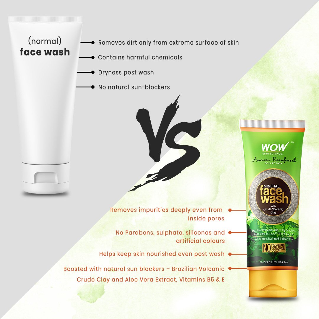 WOW Skin Science Amazon Rainforest Mineral Face Wash with Crude Volcanic Clay