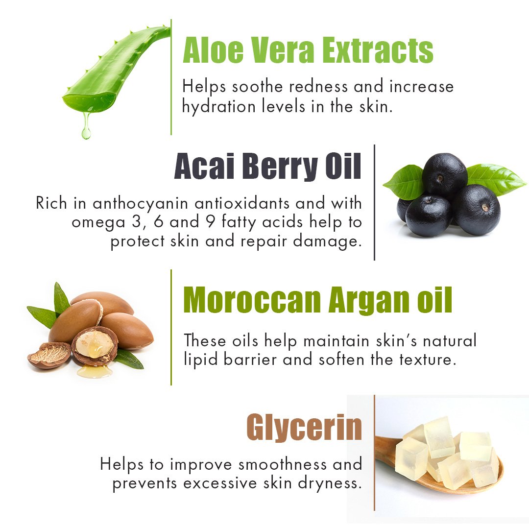 These oils help maintain skin's natural lipid barrier,and soften the texture.