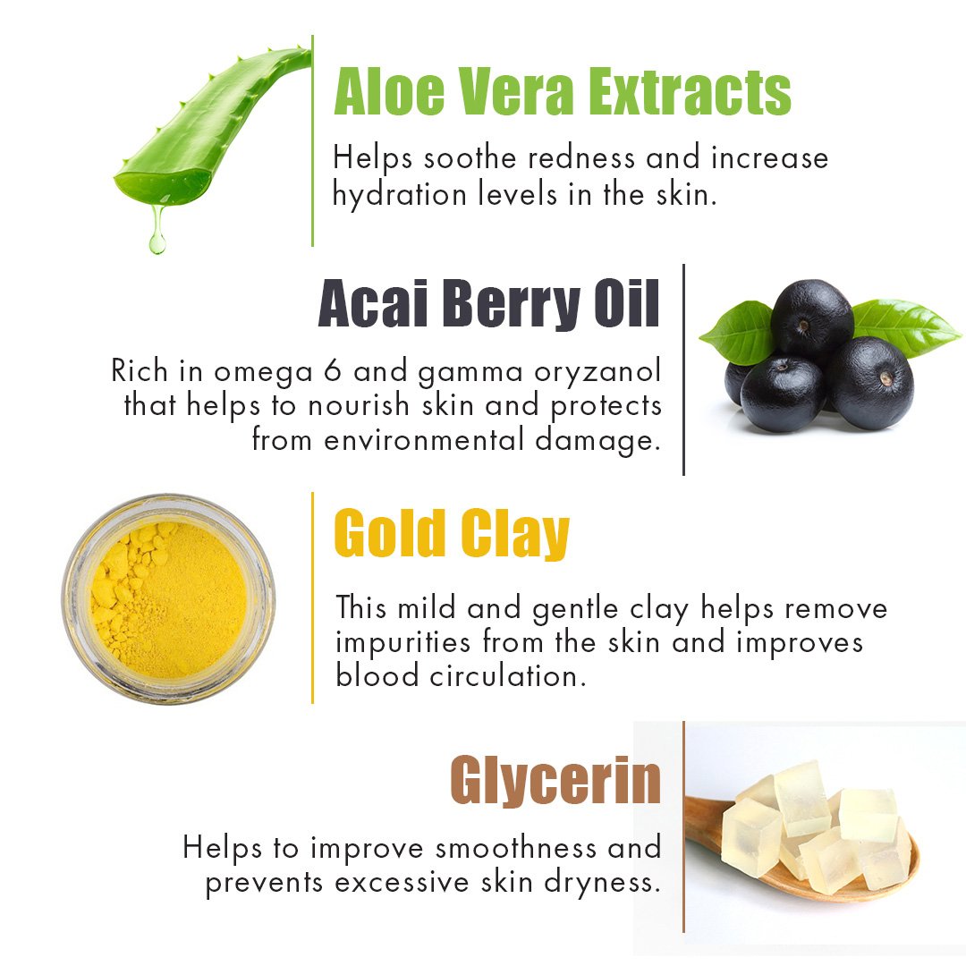Brazilian Kaolin Gold Clay deep cleanses the skin